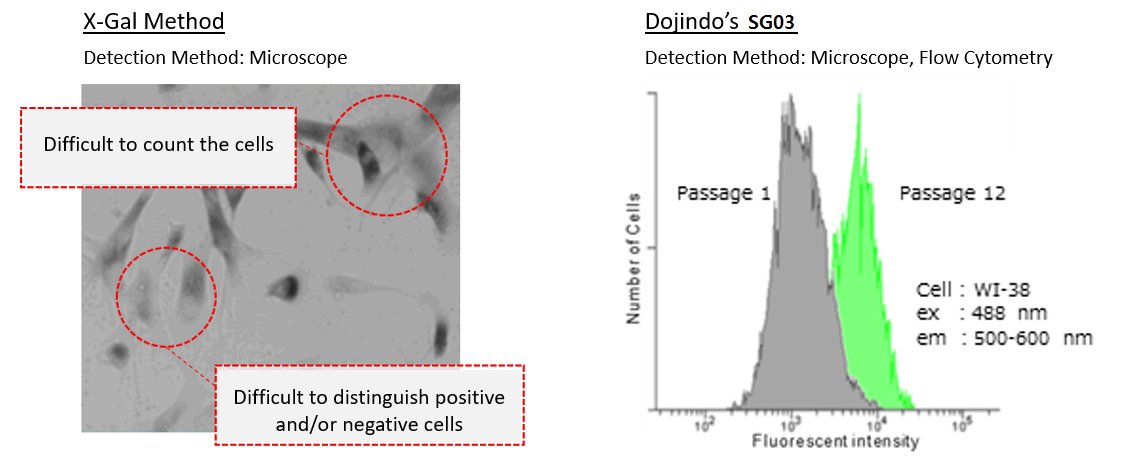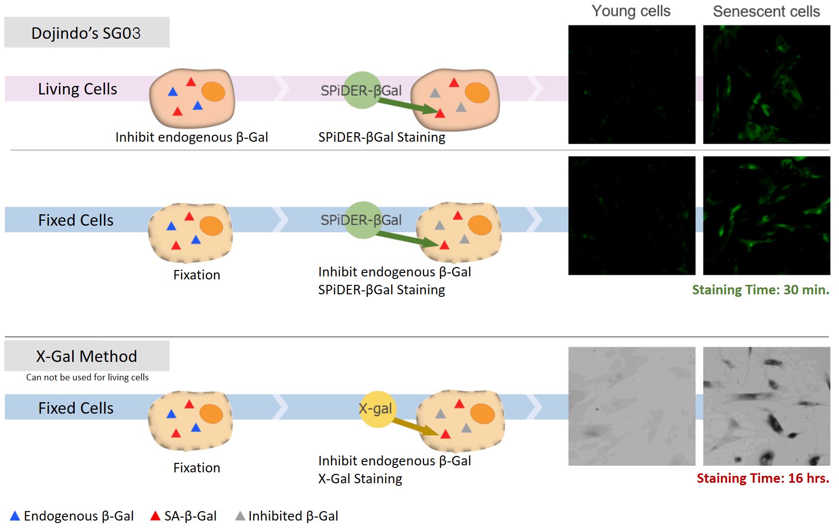 Difference between X-Gal method and Cellular Senescence Detection Kit – SPiDER-βGal I