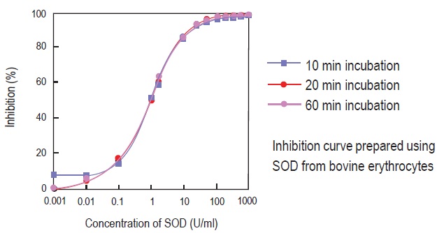 2) H. Ukeda, D. Kawana, S. Maeda and M. Sawamura, "Spectrophotometric Assay for Superoxide Dismutase Based on the Reduction of Highly Water-soluble Tetrazolium Salts by Xanthine-Xanthine Oxidase", Biosci. Biotechnol. Biochem., 1999, 63, 485.