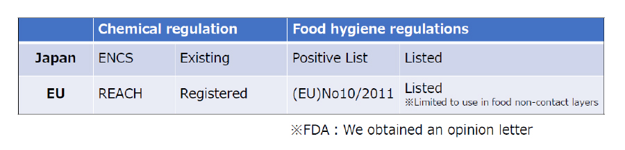 Mono-material film with high gas barrier function will be required for simple recycling process, but generally gas barrier function on film is obtained by multi layered structure of different materials. Our cleaved synthetic mica, Somasif ME can be the solution to achive high gas barrier function on mono-material film because gas permeation is suppressd by oriented mica layer.