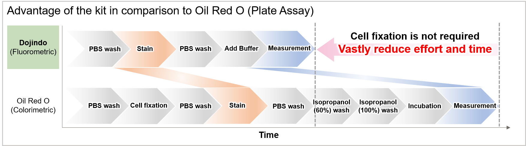 Lipid Droplet Assay Kit considerably shortens the entire process and can be used for live cells.